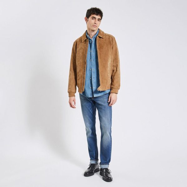 Cette chemise denim, épaisse et épurée, se porte très bien en dessous d’une veste.