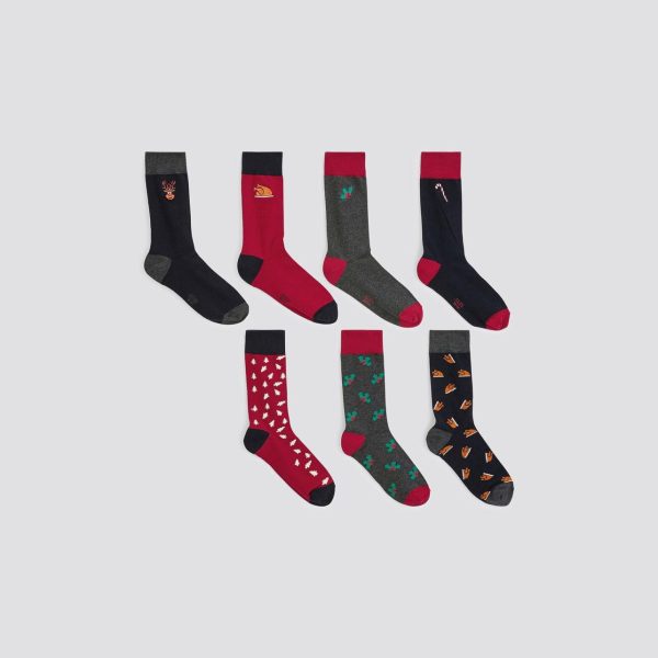 Idée originale pour offrir, ce coffret cadeau de 7 paires de chaussettes confectionné dans une maille douce et très agréable à porter apporte une touche raffinée à vos tenues avec ses motifs de Noël en jacquard.